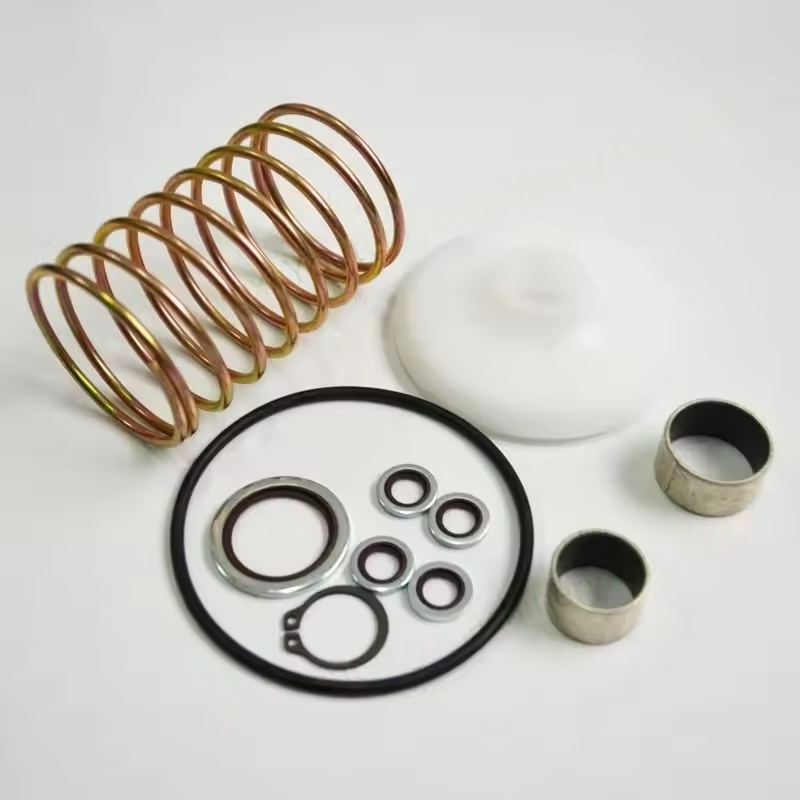 Tesniace komponenty: Zahŕňajú O-krúžky, tesniaci tesnenia, sedadlá ventilu atď. Materiály sú väčšinou guma rezistentná na olej (NBR) alebo fluororubber (FKM), ktoré sa používajú na výmenu starnutia a zlyhaných tesniacich dielov, aby sa zabránilo úniku vzduchu.