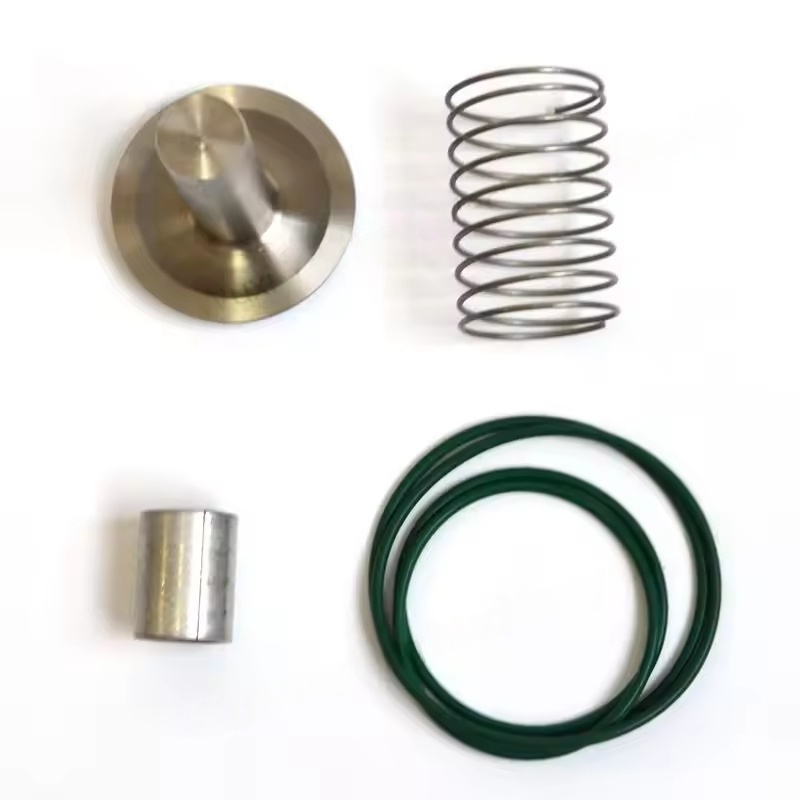 Poskytnite predpätie sily, aby ste udržali uzavreté jadro ventilu. Ak je tlak výfukového plynu kompresora väčší ako súčet pružinovej sily a tlaku zadného tlaku, jadro ventilu je tlačené otvorené a stlačený vzduch prechádza; Keď sa kompresor zastaví, pružina tlačí jadro ventilu späť do svojej pôvodnej polohy a odrežte cestu spiatočného toku.